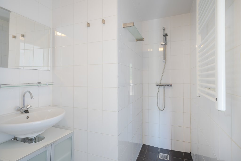 De fraaie badkamer is voorzien van een toilet, wastafel, en inloopdouche. De slaapkamer is goed van formaat en beschikt over een ruime kledingkast.
