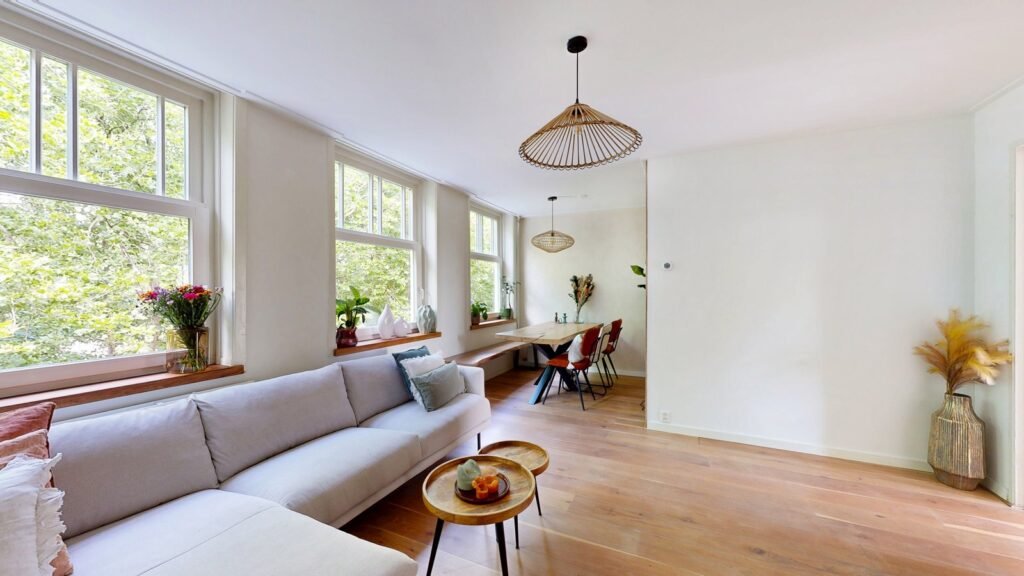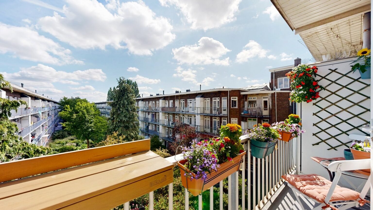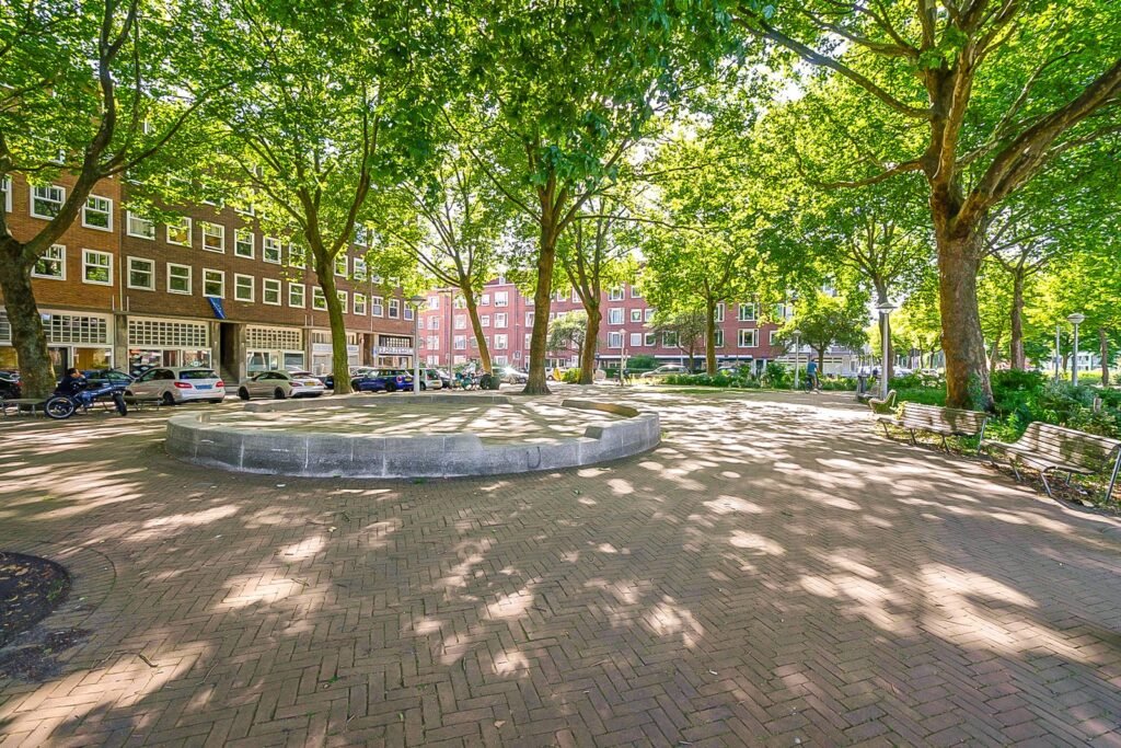 Dit appartement ligt aan de rand van het karaktervolle Westerpark, een van de oudste en mooiste stadsparken van Amsterdam. Hier woon je omringd door groen, terwijl het bruisende stadsleven zich letterlijk om de hoek afspeelt. Binnen enkele minuten ben je met de auto op de ring A10, en ook het centrum van Amsterdam is snel en makkelijk bereikbaar.