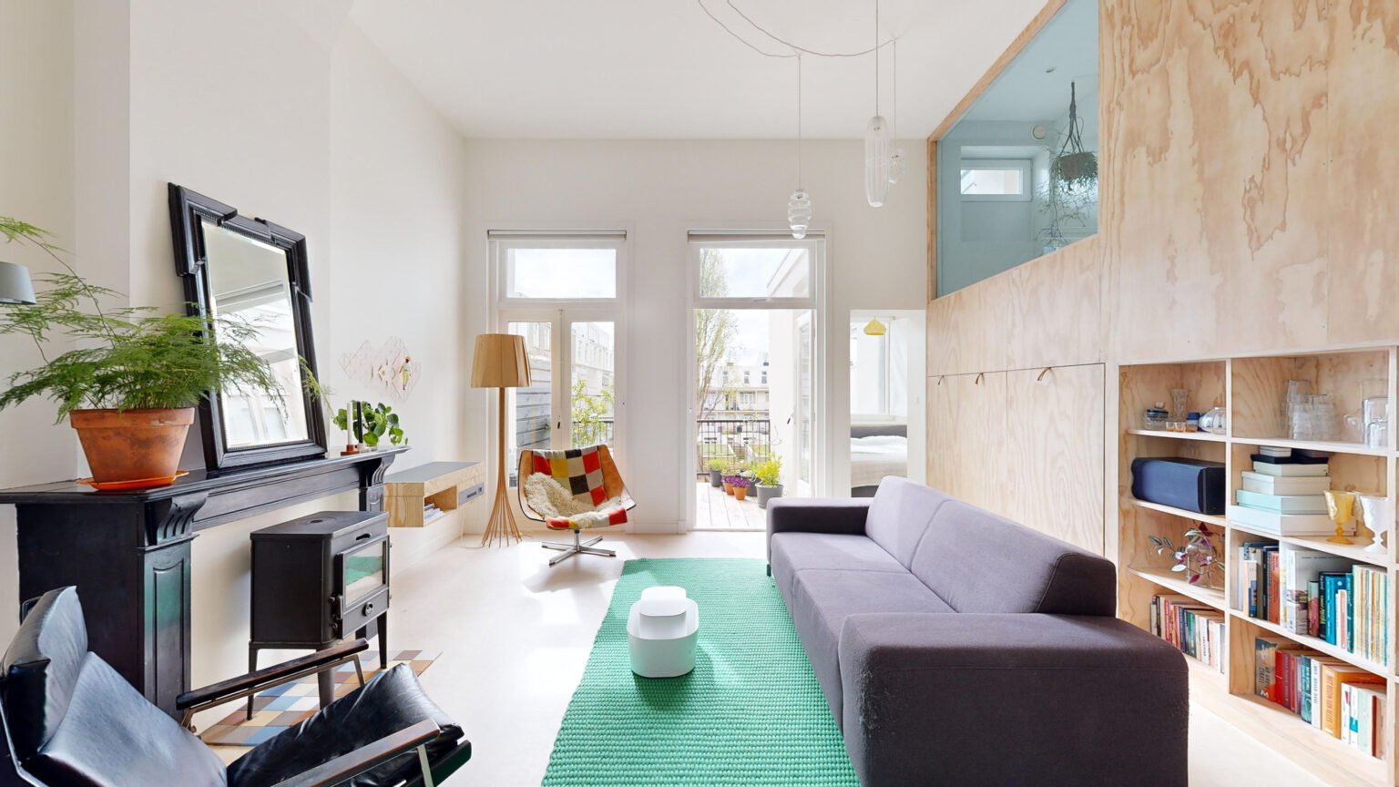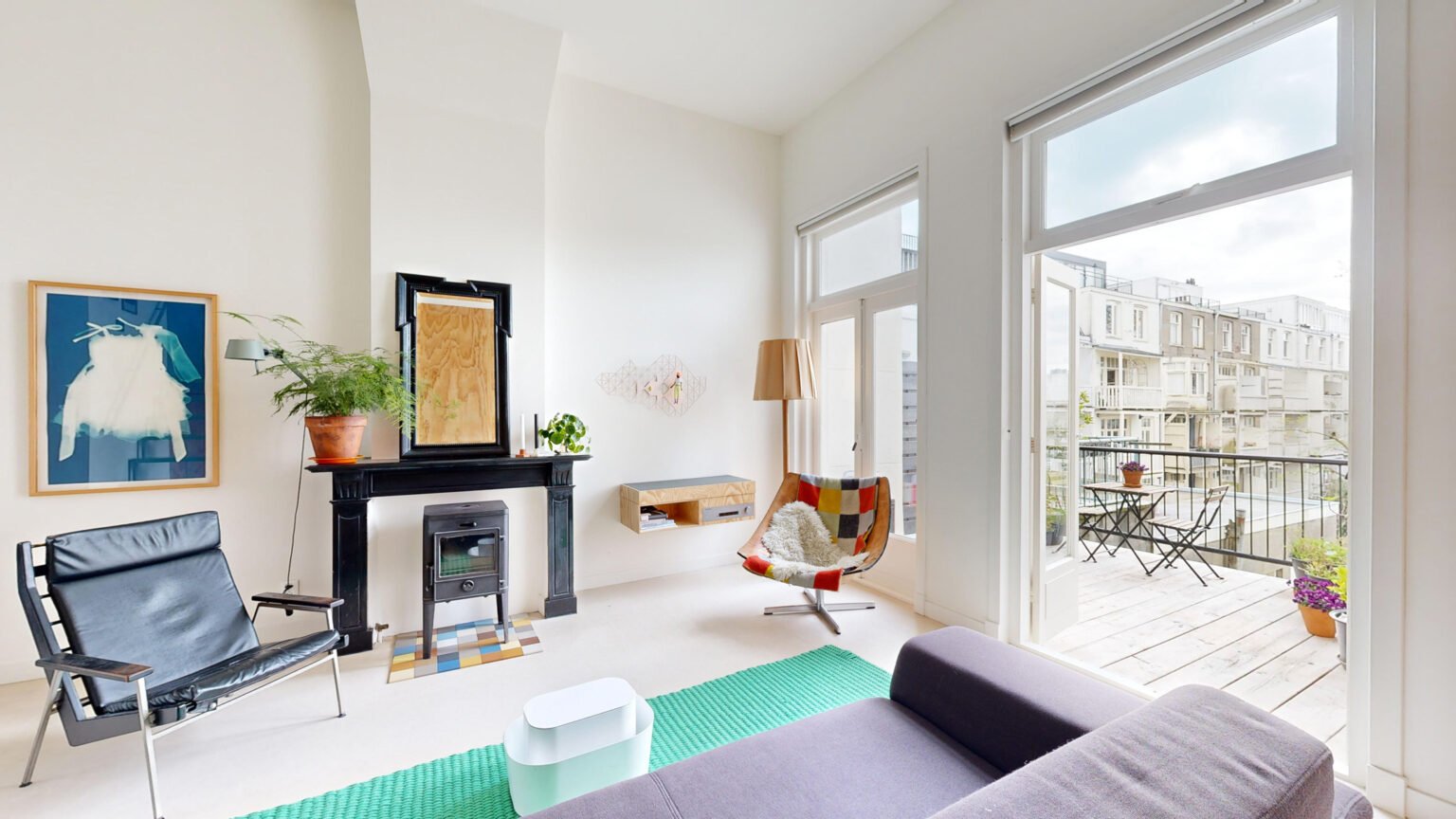 De woonkamer is heerlijk licht en het dakterras ligt er aantrekkelijk bij. Gelegen op het zuidwesten kan je hier genieten van de aankomende zomerse dagen en avonden.